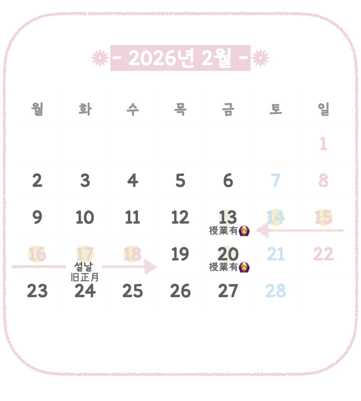 안녕하세요!한국어 강사 Yoom입니다♥한 주의 시작인 월요일이네요. 즐거운 하루 보내셨지요?한국은 내일(1월 24일)까지 설 연휴입니다!한 해가 바뀐 지 얼마 안 된 것 같은...