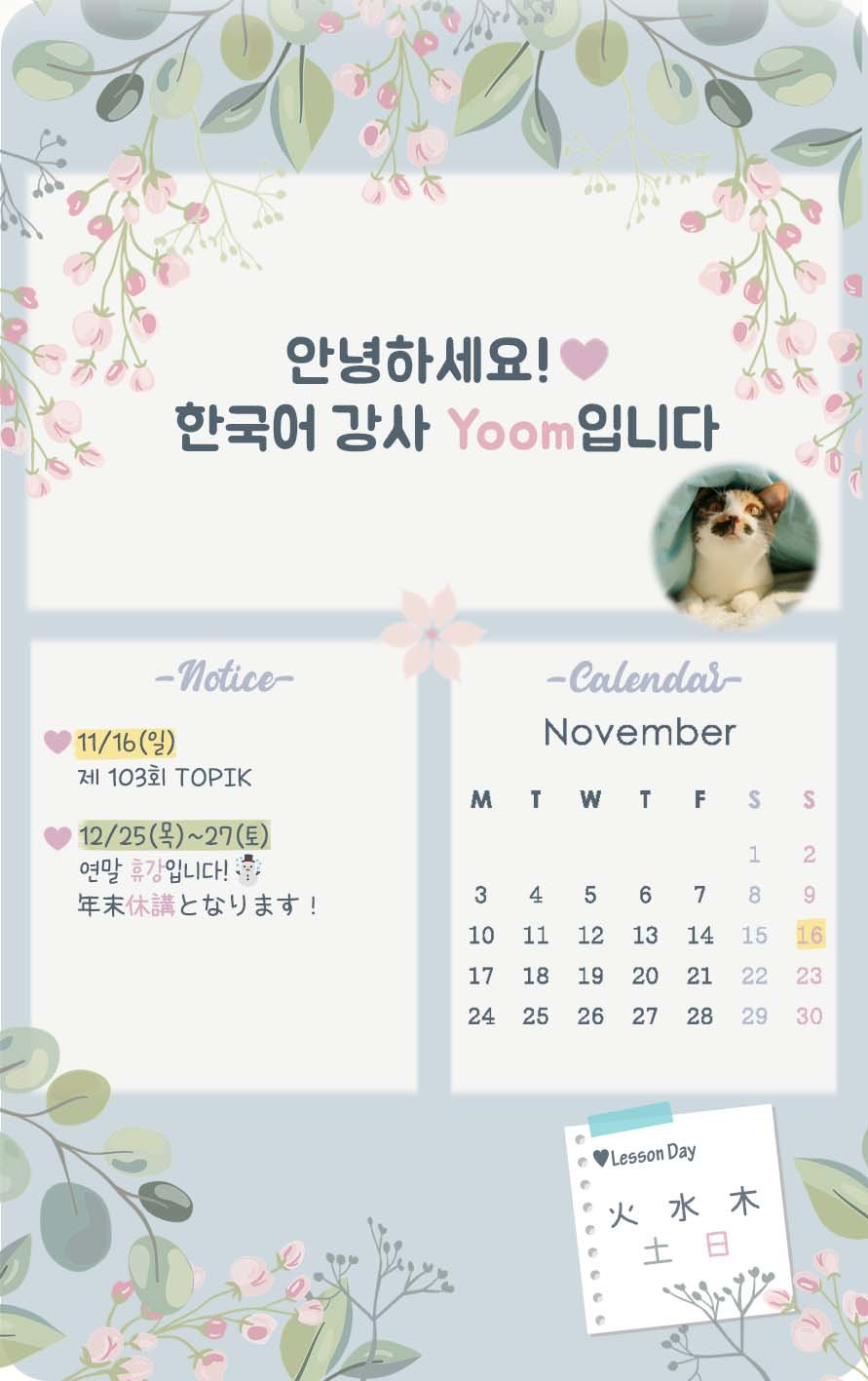 In addition, as I majored in Korean language education and have taught Korean offline, I would like to provide lessons for various levels of Korean language learners, from beginner to intermediate and advanced based on those experiences.