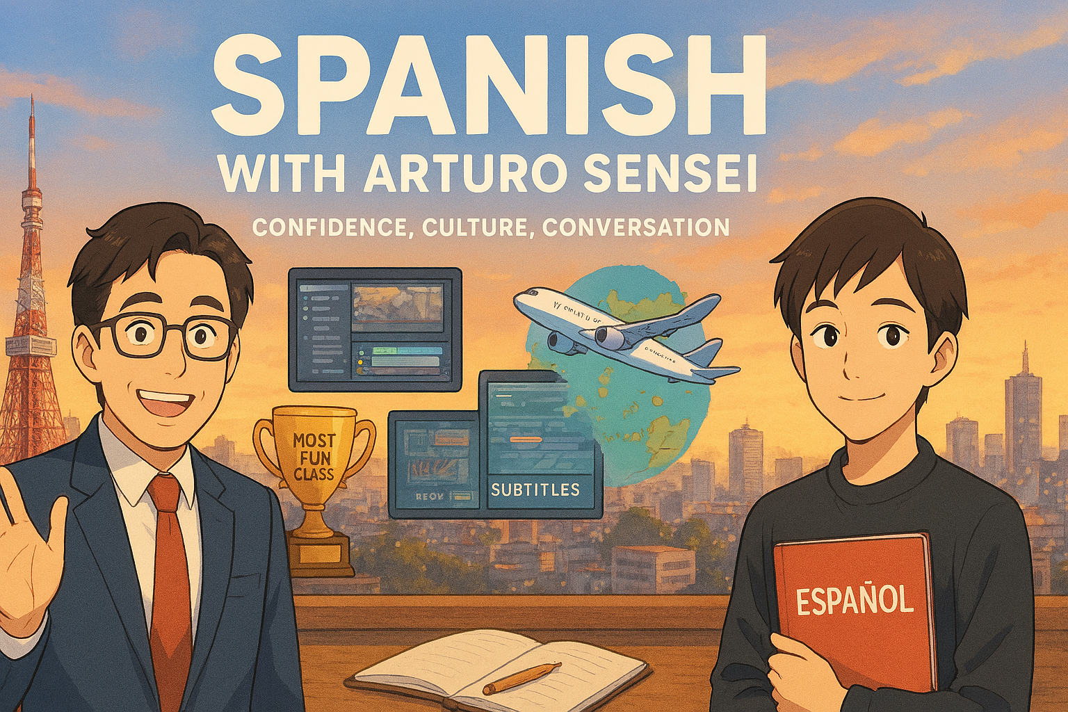 スペイン語を話すことに、少し緊張していませんか? 文化が好きでもうまく話せない、そんなあなたのための、安心して楽しく学べる場所です。はじめまして、Arturo Sensei と申します。「最も楽しいレッスン」賞を受賞した、6年以上の経験を持つメキシコ人講師です。日本の生徒様専門に指導しております。