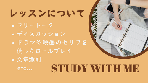 主(おも)に、フリートークを通(とお)して、会話力(かいわりょく)を向上(こうじょう)したいみなさんに向(む)けたレッスンをしています。