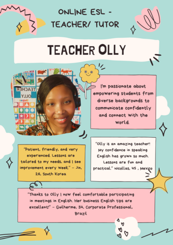 My name is Olwethu, also knows as Olly, and I am an experienced online English tutor with a background in law and education. I have worked with students from around the world,from beginners learning their very first English words to professionals preparing for business meetings, interviews, or academic goals.